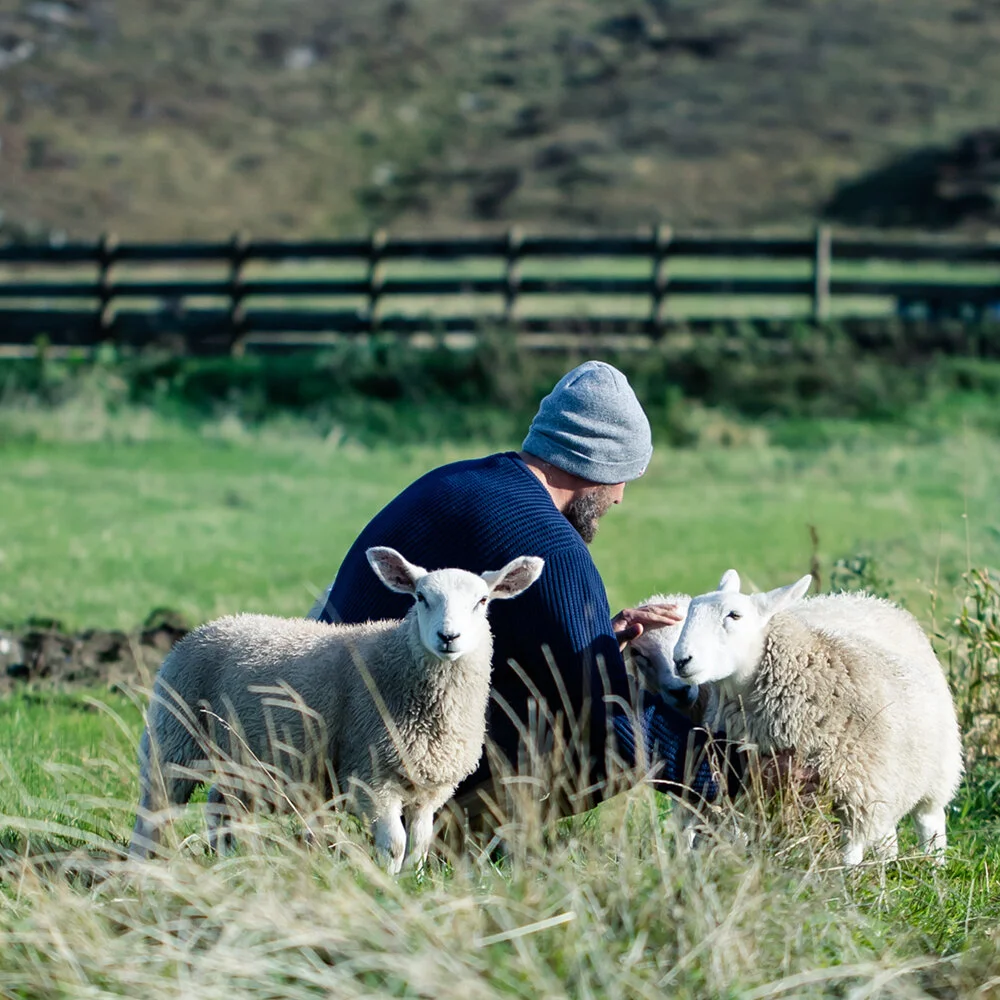 Fortifying their milk with garlic and adding herbs to their mineral feed, not only did they grow much bigger than is usual for orphan lambs, their fleeces also seemed to benefit hugely. That is when the idea first sparked. We could use their fleeces. We could make wool. We could make hats. Who doesn’t like woolly hat? We love a woolly hat. Don’t you?